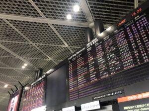 名古屋から東京まで、前日に新幹線で移動して、成田空港から出発します。