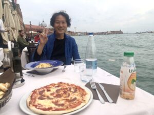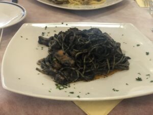 夜ごはんは、イカ墨パスタを食べました。ランチはカルボナーラでしたが、ベネチアでは、イカ墨の方が、おススメとのことです(^^♪