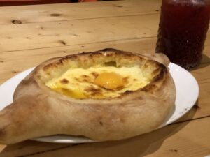 ジョージア初日の夜は、伝統料理のヒンカリ(水餃子)とハチャプリという卵料理を食べてみました。すごく美味しいです♪とても美味しかったので、ジョージア滞在中、何度も食べました。