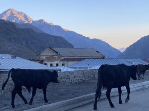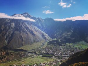 2時間半ほどで、カズベキ山の麓ステパンツミンダ村に到着しました。