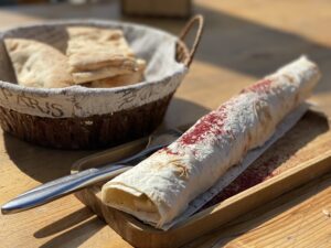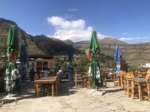 ゲストハウスにチェクインする前に、カフェで、山を見ながら昼食を食べました♪