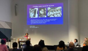 発表会場のルームCには、早めに入りました。壇上で予行演習をしていたら、他の発表者も集まってきて、みんなで記念撮影をしました。フレンドリーな人達が多くて、和気あいあいとした雰囲気のルームでした。